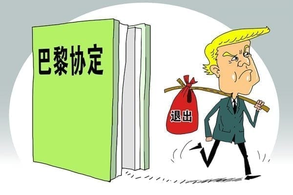 根据官方报道,2017年 6月,特朗普总统在白宫玫瑰花园发表讲话时表示,巴黎气候协定旨在束缚美国,使美国贫困,并使美国商界处于不利地位。巴黎协定将使美国国内生产总值减少3万亿美元,并使工作岗位减少650万个,但竞争对手中国和印度等国家的相关待遇却好得多。他表示,”为了履行我对美国及美国公民的庄严职责,美国将退出巴黎气候协定”,”但将开启谈判,以重新进入巴黎协定,或对美国公平的全新交易”。