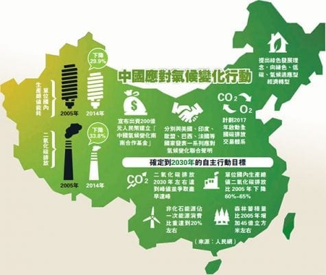 《巴黎协定》是继《京都议定书》后第二份有法律约束力的气候协议,是开启全球气候治理新阶段的历史性协定,2016年11月生效。事关2020年以后全球应对气候变化行动安排。巴黎协议旨在限制因气体排放所造成的全球温度上升。有害气体或排放物是经由工厂或农业活动产出,会造成气候变化、全球暖化。签约国同意: 让全球平均气温升高不超过2摄氏度,并且朝着不超过1.5摄氏度的目标努力;限制人类行动排放的温室气体量至与树、土壤、海洋等自然界可以吸收的量,预计在2050年至2100年间完成此目标; 每五年检视各国碳减排成果以强化行动; 富国向穷国提供”气候金援”来适应气候变化并协助发展可再生能源。