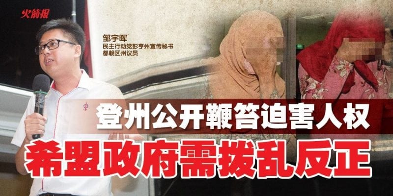 彭州都赖区州议员邹宇晖发文告提醒国阵彭州政府,切勿与伊党主政的登嘉楼陷入“保守伊斯兰化的竞赛”,而典当了性少数群体的权益和普世价值。他形容,这是宗教保守分子的议程,不仅藐视人权,与多元文化的民情格格不入,而且也违反了希盟政府强调开明改革和多元世俗主义的原则。他提醒,彭州苏丹曾在2010年以人道主义的立场,特赦一名在酒吧饮酒而遭判鞭刑的女模特儿,阻止保守宗教思想入侵。他认为,彭州政府责无旁贷,拒斥类似保守极端的言论行为,并避免彭亨迈向政教合一之路。“彭亨州政府应该了解到,捍卫多元价值的重要性,这才是州内各族子民和谐共处,互相尊重的基石,一味迎合保守宗教势力,只会摧毁多元精神,让社会倒退。世俗主义是马来西亚立国之本,想要以各种手法让神权制度取代世俗制度,无疑与大马的多元价值背道而驰,最后将会撕裂大马社会,让国家失去宽厚包容的魅力,还会与国际社会脱节。一旦如此,我国政治制度失去凝聚各族的能力,最终沦为一个失败的国家。” 他也指,随着马来西亚将要签署《联合国禁止酷刑公约》,政府应该逐步废除鞭刑,而不是以性取向为罪名公开鞭笞羞辱当事人,违反公约的精神。