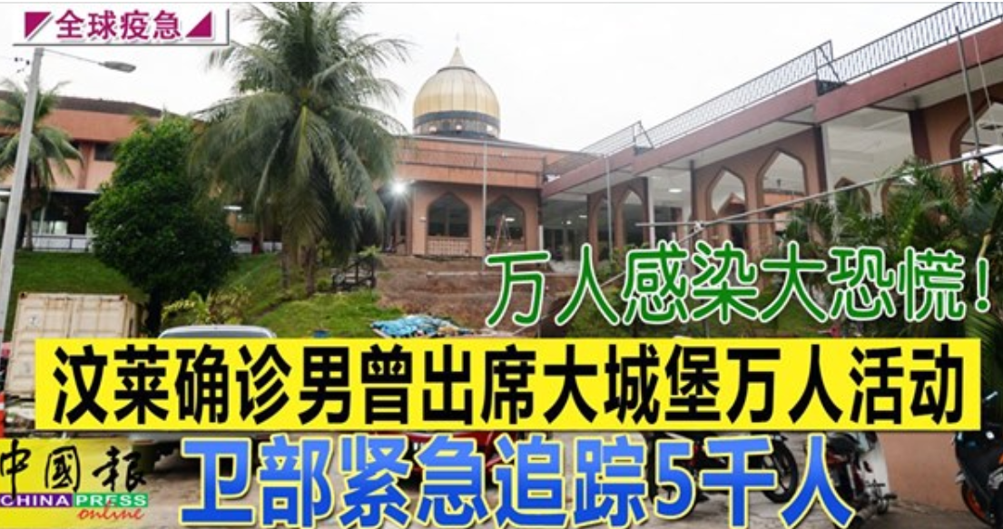 2020年03月11日,汶莱国际卫生条例(IHR)已经通知大马,该国确诊冠病的病人曾出席在吉隆坡大城堡清真寺举行的万人伊斯兰传教士(Tabligh)集会。这名确诊病患是在2月27日至3月1日期间,参与上述活动。根据初步资料,这场传教活动涉及人数达1万人,出席者来自数个国家,包括大马,而大马人占了约5000人。13日,东马沙巴和砂拉越以及西方半岛多地出现确诊。直到15日中午,大马卫生部成功追踪4942人。当中超过一千名感到不适,接近三千人隔离。最新的238宗病例中有77宗与该万人聚会有关。