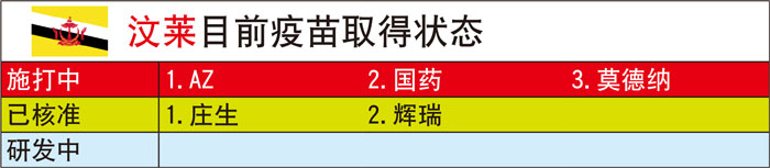 汶莱苏丹博尔基亚在今年4月2日接种了AZ疫苗,如今能在汶莱施打的疫苗包括AZ、莫德纳、中国国药疫苗,已核准的辉瑞、庄生疫苗也已下单。作为东协最富裕的国家,汶莱官方也宣布让境内公民、居民(包括外国公民)免费接种疫苗。
