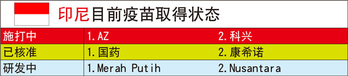 印尼是东协人口最多的国家,目前也是疫情最严峻的国家。原本印尼有发展两款国产疫苗,分别是官方投入大笔资源支持的“红白疫苗”(merah putih,采灭活疫苗技术),以及由前卫生部长特拉万支持新技术的“千岛疫苗”(Nusantara,采树突细胞技术),但后者仅进行了二期试验,第三期就被官方终止研发了,而被官方给予厚望的“红白疫苗”,则有望在明年量产。