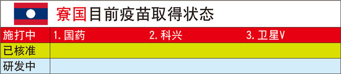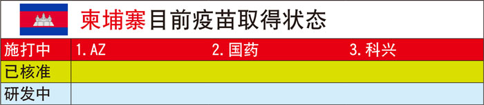 寮国、柬埔寨,与缅甸一样,国内均施打3款疫苗,其中两款同样是施打来自中国的国药、科兴疫苗,另外,寮国和柬埔寨是中国今年初展开的疫苗外交下,首批获得中国疫苗的国家,其中寮国是无偿受助,柬埔寨则是军队优先获得。