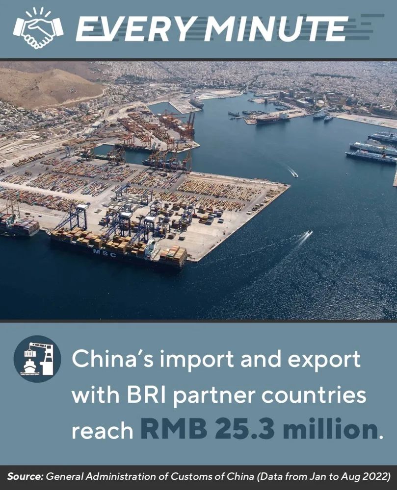 6. 每一分钟:中国与“一带一路”沿线国家进出口总额达到2530万人民币
