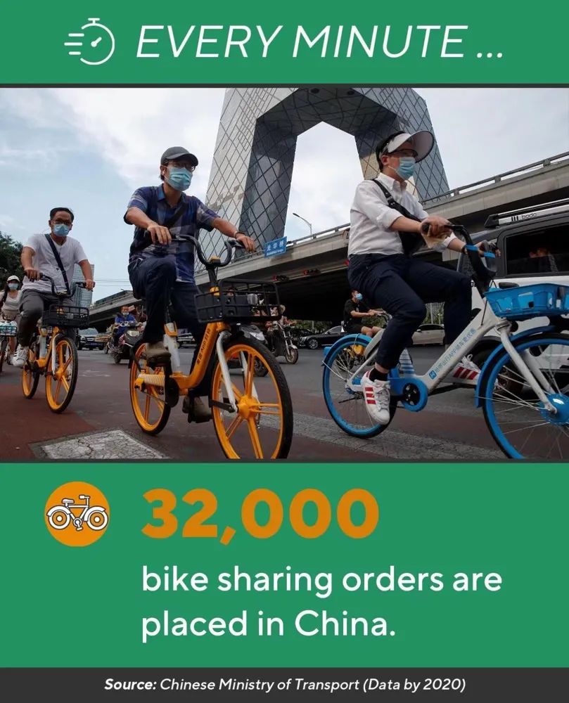 6. 每一分钟:中国添加3.2万份共享单车订单