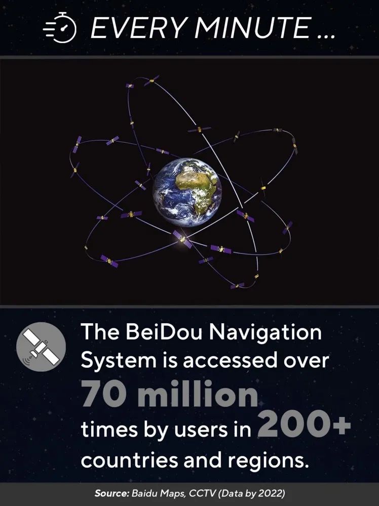 3. 每一分钟:北斗卫星导航系统被200多个国家和地区的用户访问超过7000万次