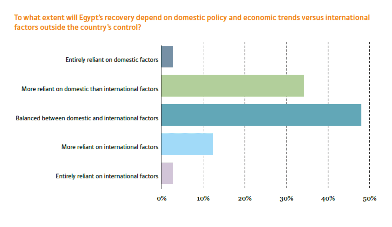 另外,根据埃及的复苏程度上研究,最大程度上取决于国内政策和国际经济趋势的平衡,甚至是国内的经济活动远高于国际活动的因素。