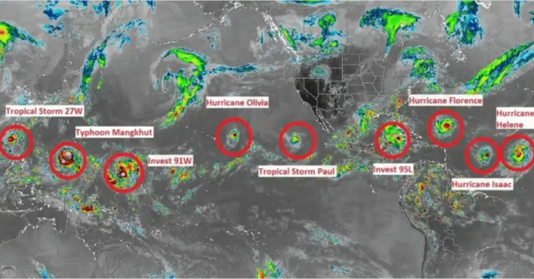 (香港13日讯)目前北半球进入热带气旋活跃期,除了超强台风「山竹」和目前降为2级飓风的「弗洛伦斯」,西太平洋、东太平洋及大西洋亦出现5个热带气旋,以及两个有机会发展为热带气旋的热带扰动。