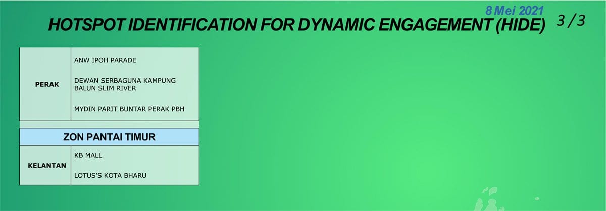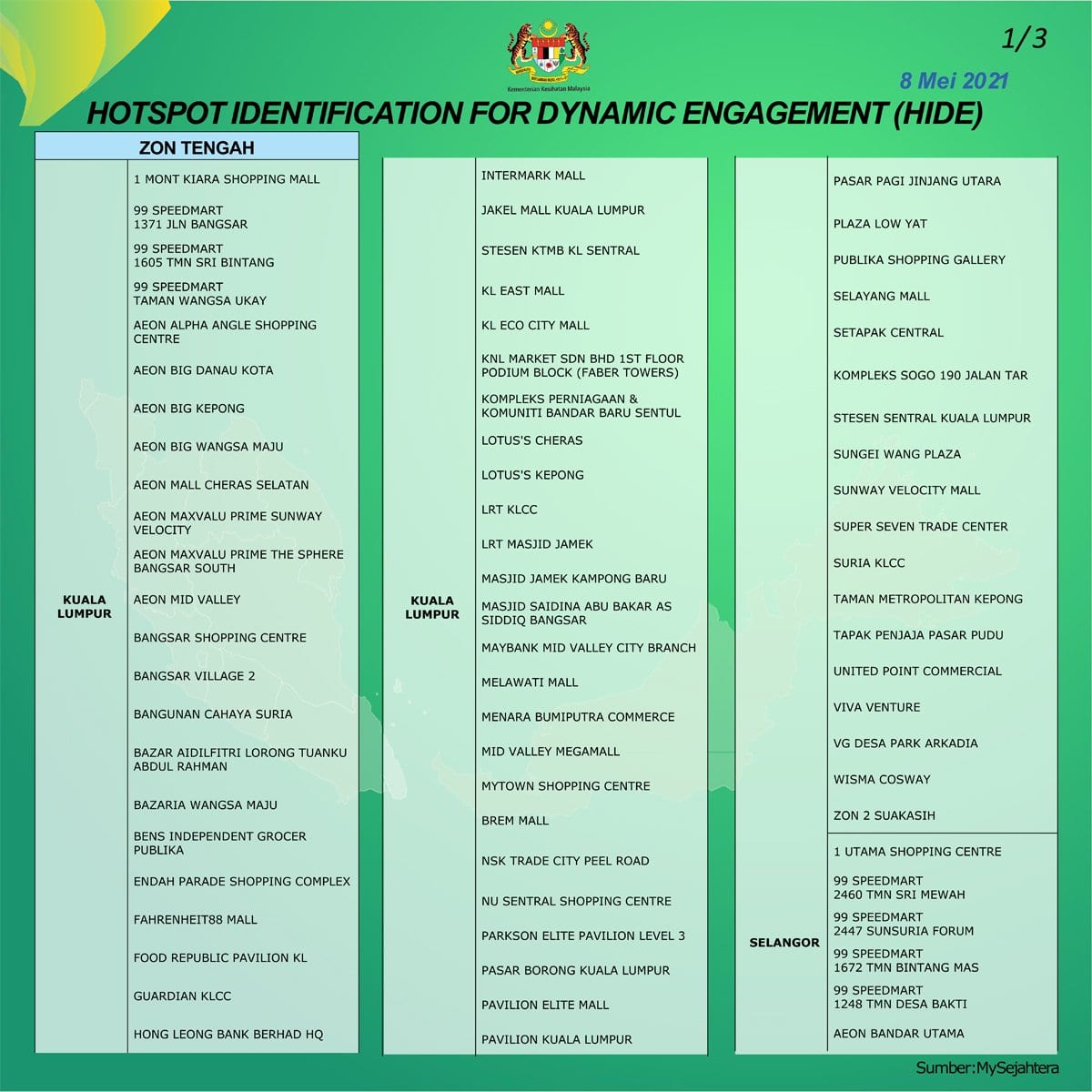 在今天公布的HIDE名单中,全国共有151个地点被列为“高风险”热点,中马地区的吉隆坡、雪兰莪及布城共有123个热点,当中以购物中心、霸级市场及超级市场居多。