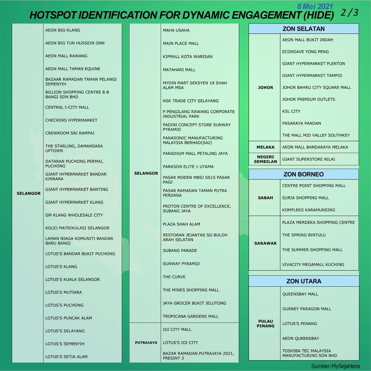 这些购物中心是就国防部高级部长拿督斯里依斯迈沙比利宣布,那些被列进HIDE名单内的场所,必须关闭3天以进行消毒工作一事,于今晚发出暂时关闭的通告。
