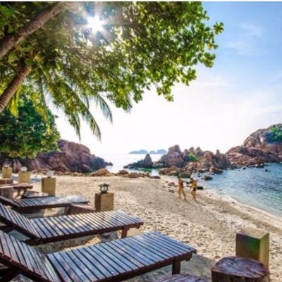 夏日么么茶海滨度假村(LagunaResort)坐落于热浪岛最美的海滩上,建在原来拍摄电影《夏日么么茶》的那个海湾边上,与这座美丽的海岛融为一体。一进入LongBeach,眼前所见的粉色建筑物,就是《夏日么么茶》的拍摄地点,也就是戏中主角任贤齐经营的民宿,这栋为拍戏而搭起的可爱小屋只有两层楼,现在成为纪念品店及咖啡厅,是热浪岛纪念照的必拍景点。
