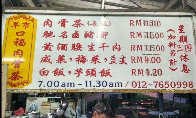 地点: 亚罗拉银旺路潮州砂煲肉骨茶 营业时间:早上七时至下午三时;周四休息